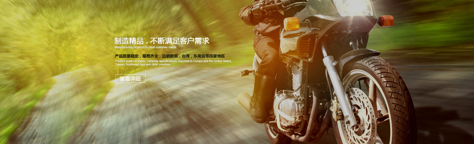 公司主營(yíng)的GY6,AN125,UZ125,115T,100T,290,90,50等軸套(滑套,定距筒)及HM50起動(dòng)座系列產(chǎn)品,被國(guó)內(nèi)大型合資摩托車(chē)廠評(píng)為指定供應(yīng)商,同時(shí)與國(guó)內(nèi)幾家知名品牌摩托車(chē)廠家,發(fā)動(dòng)機(jī)主機(jī)廠家建立了長(zhǎng)期穩(wěn)定的合作關(guān)系。公司產(chǎn)品遠(yuǎn)銷(xiāo)臺(tái)灣,東南亞等國(guó)家地區(qū)